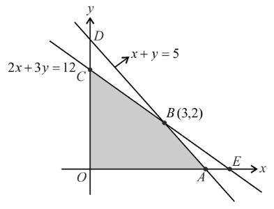 Question-10 The number of corner points of the L.P.P. Max Z=20 x+3 y subject to the constraints x+y \leq 5,2 x+3 y \leq 12, x \geq 0, y \geq 0 are